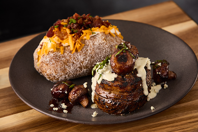 Bacon-wrapped / bleu cheese sauce / port mushrooms / side
