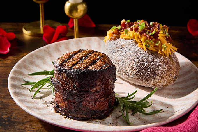 Center cut / garlic thyme butter / port wine demi-glace / Parmesan mashed potatoes / seasonal vegetable