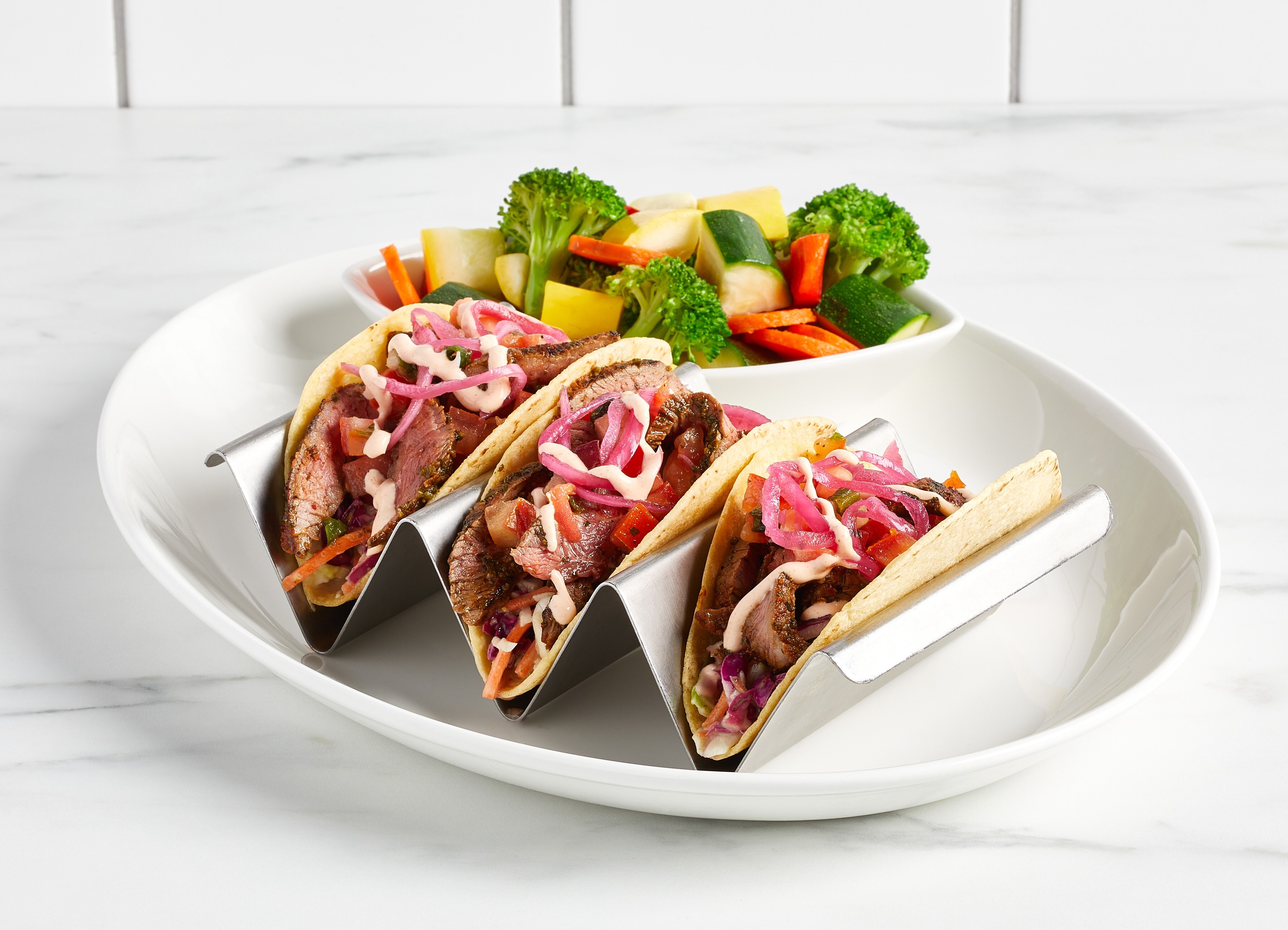 Wood grilled chimichurri steak / cabbage / pico / pickled onions / spicy sriracha sour cream