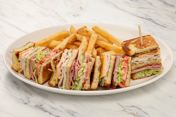 BLT Sandwich, Cheeseburger*, Crispy Flounder Sandwich, Grilled Chicken Sandwich, Salmon Club Sandwich, Roast Beef Grilled Cheese