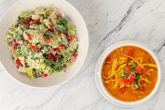 Bowl of soup served with your choice of a small Caesar, BLT, or Mixed Greens salad