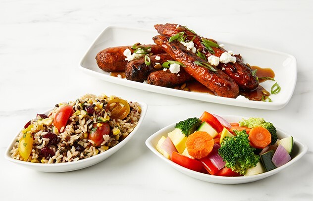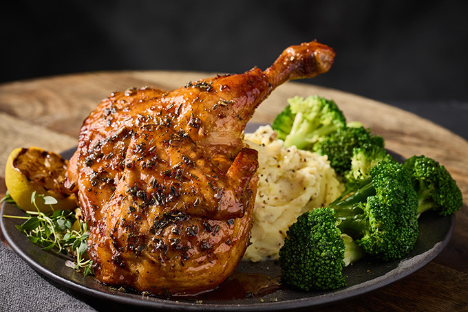 Grilled chicken / honey garlic glaze / cherry tomatoes / balsamic / basil / seasonal vegetable / side